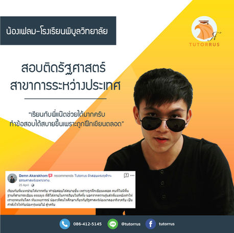 "ติดรัฐศาสตร์ มธ.ทั้ง IA และ BIR ได้เพราะพี่แน๊ตเลยค่ะ เรียนทุกคอร์ส เทคนิคการสอนและเทคนิคการเขียนเรียงความคือ the best ประทับใจบริการหลังการขายที่สุด คอยอัปเดตข่าวให้ตลอดยันวันสอบเลย"